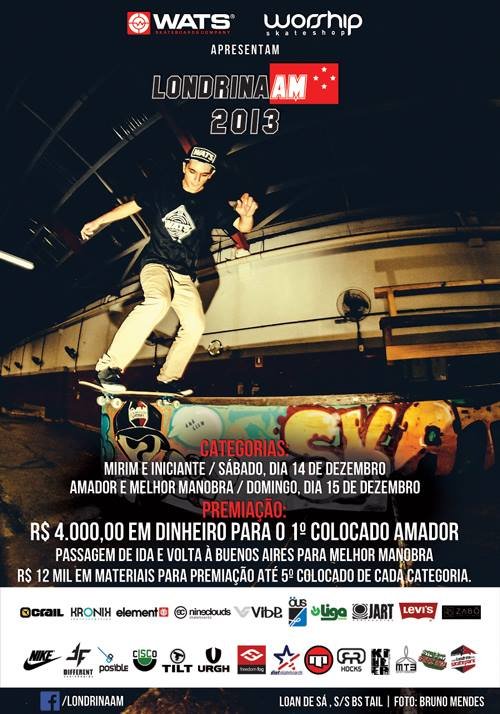 Rapaziada de Londrina e região, fiquem espertos no campeonato amador realizado pela Worship skate shop que será realizado dias 14 e 15 de Dezembro. Premiação tá monstra!!!!